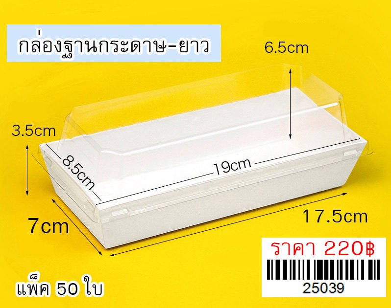 กล่องฐานกระดาษ+ฝา (ทรงยาว) แพ็ค 50 ใบ