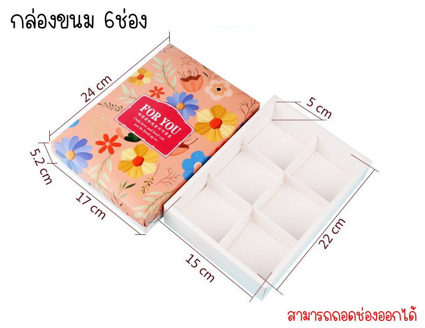 กล่องขนม 6ช่อง พิมพ์ลาย แพ็ค 10 ใบ