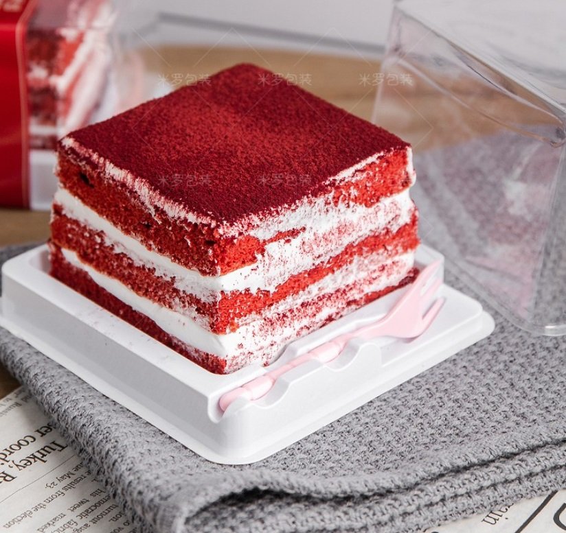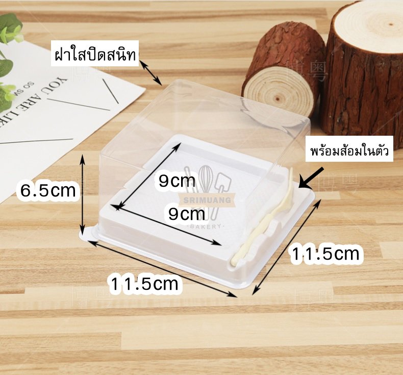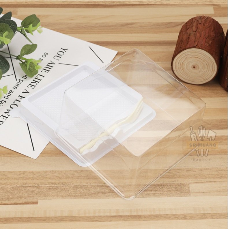(รหัส H-909) กล่องเค้กพลาสติก+ส้อม แพ็ค 50 ใบ