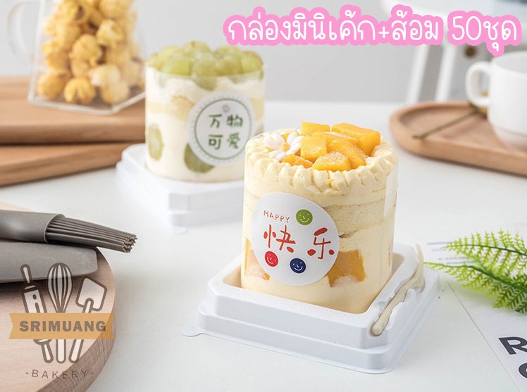 (W-159) กล่องมินิเค้ก+ส้อม แพ็ค 50 ใบ