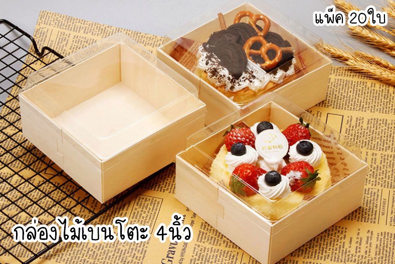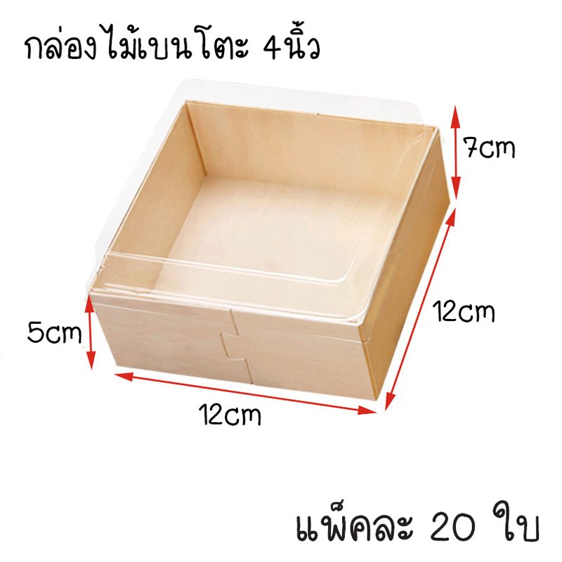 กล่องไม้เบนโตะ 4นิ้ว (12x12cm) แพ็ค 20 ใบ