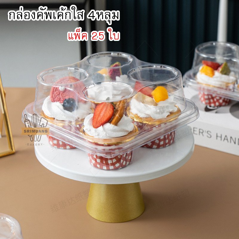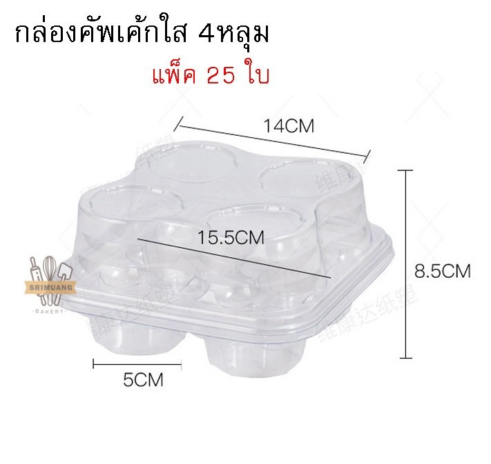 กล่องพลาสติกใสคัพเค้ก 4หลุม แพ็ค 25 ใบ