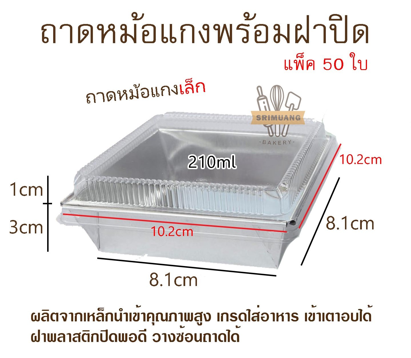 ถาดหม้อแกงเล็ก พร้อมฝาปิด แพ็ค 50 ใบ